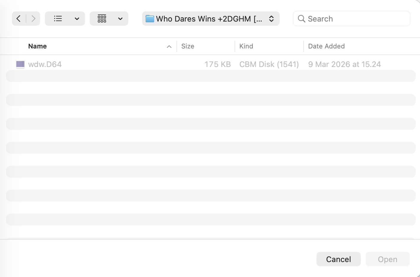 The issue is that you have another app (likely VICE) installed that already registered its own file type for .D64 files with macOS — that's why Finder shows them as "CBM Disk (1541)" instead of our type. The Open dialog was only looking for our specific type, so files registered under the other type got greyed out.