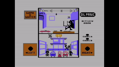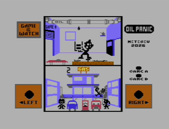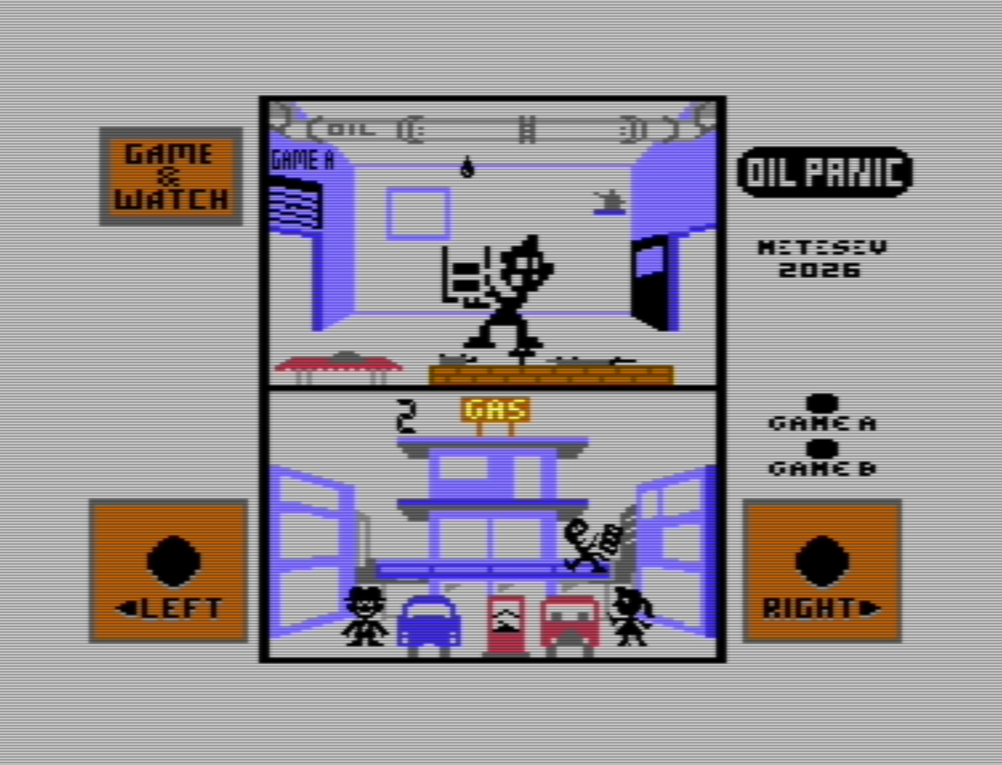 Step into the shoes of the hardest-working Service Attendant in the 8-bit world. In this faithful C64 tribute to the dual-screen LCD classics, your mission is simple: Catch the oil. Fill the drum. Don't soak the customers.